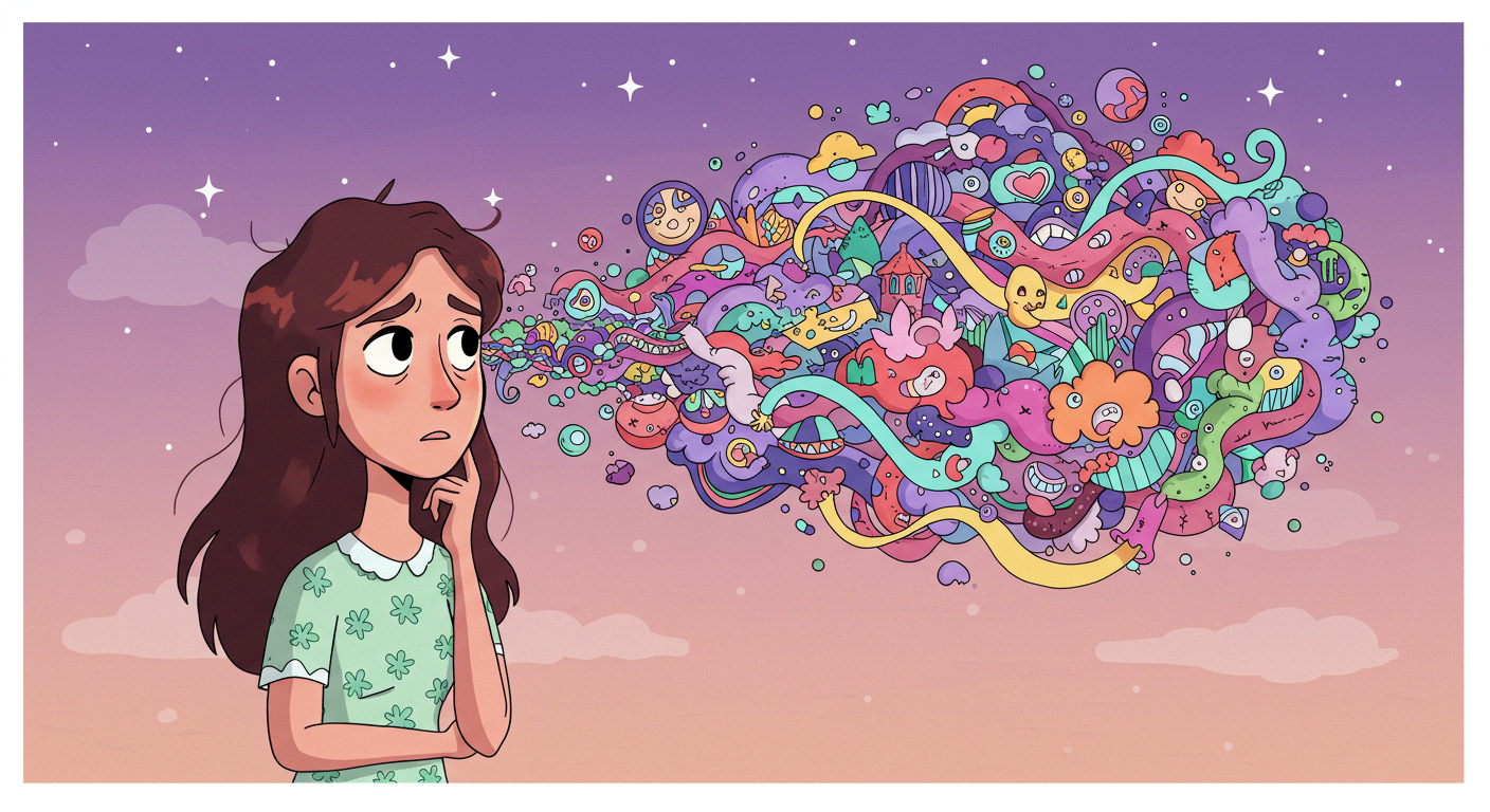- 思考の世界:もし〇〇だったら? 本当にこれでいい?──終わりのない問いが頭を占領。